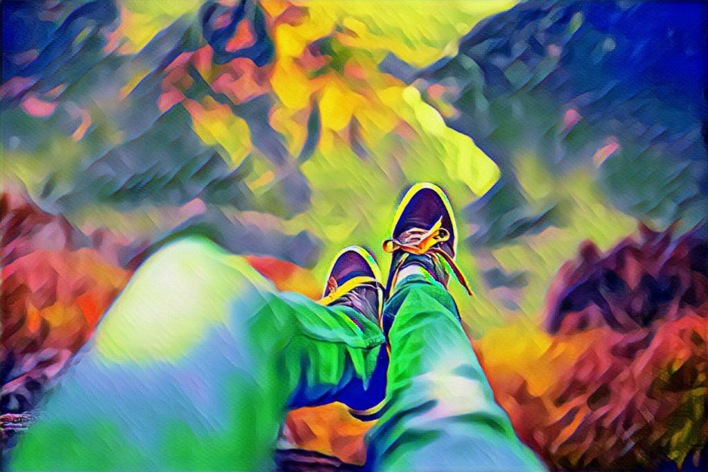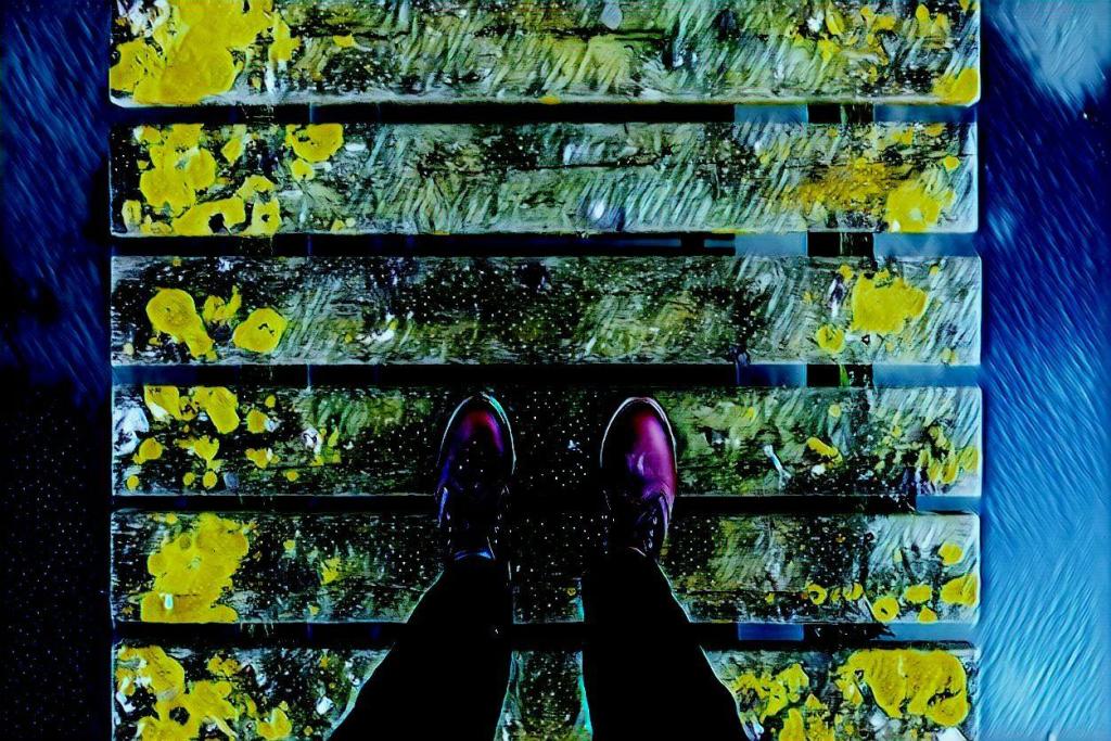 Dann trete ich von mir zurück, nehme Abstand zu dem was da gerade passiert und greife eine Gedankenschleife auf, die in besonders schwierigen Zeiten in meinem Leben half. Dabei stehe ich an dem Abgrund einer Schlucht und vor mir zeichnet sich langsam und schemenhaft eine Art Weg, eine morsche Brücke ab. Ich weiß nicht ob sie mich hält.