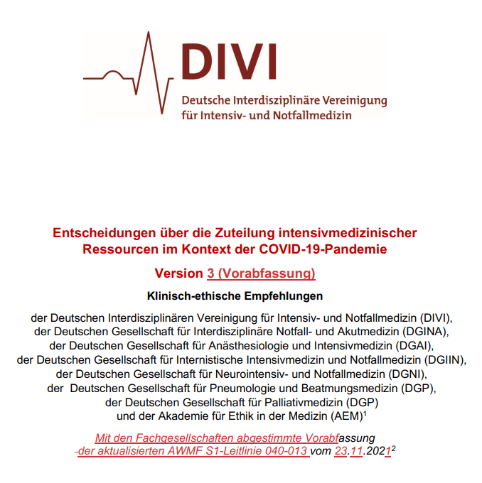 das von der DIVI (Deutsche Interdisziplinäre Vereinigung für Intensiv- und Notfallmedizin) am 23.11.2021 in einer neuen Version (3) herausgebrachte Dokument mit dem Namen: