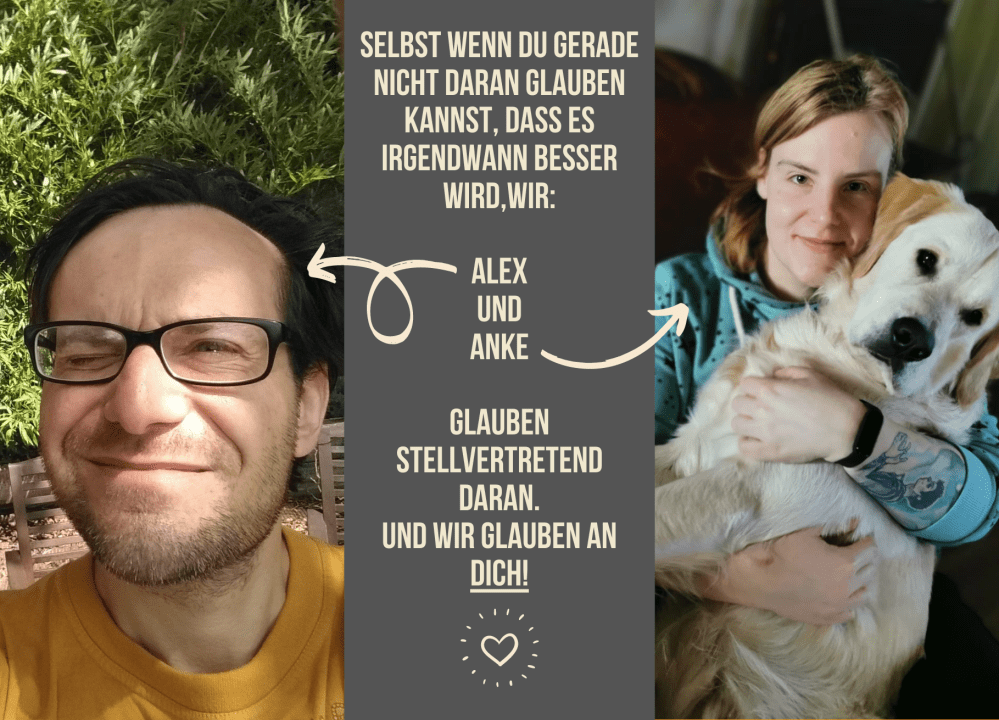 Nun hat Alexander einen neuen Aufschlag gemacht – zusammen mit Anke – und möchte DIREKT bei Betroffenen ansetzen, die kurz vor einem Suizidversuch stehen!